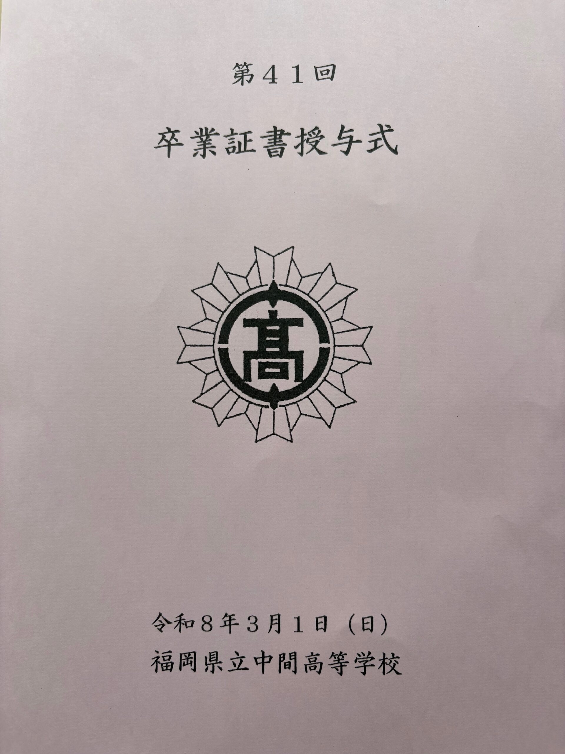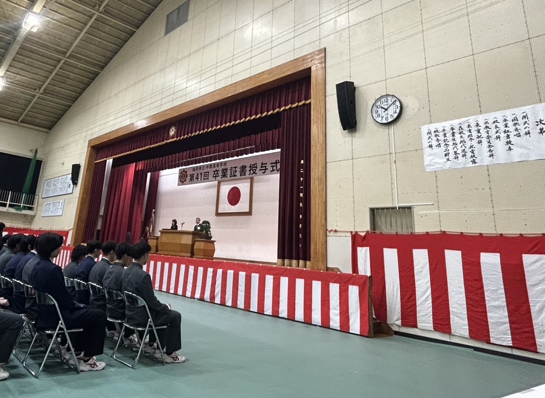 3月1日(日)中間高校にて「第41回 卒業証書授与式」が挙行されました。