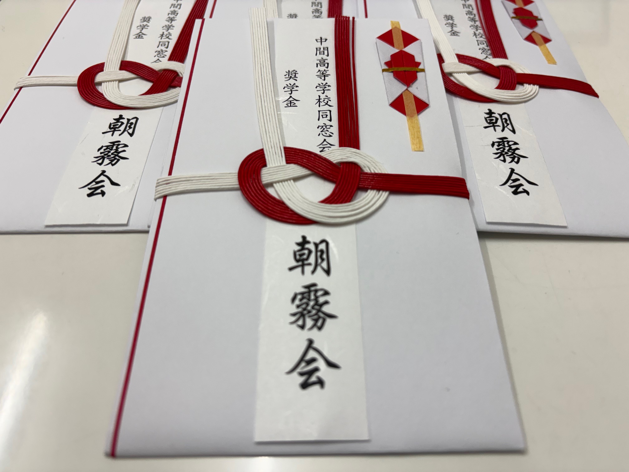 第七回 中間高等学校同窓会朝霧会奨学金給付式